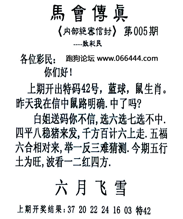 005期:必中六肖 |